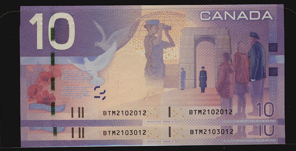 2005 $10 RADAR Notes BC-68a. Lot of two notes #BTM2102012 and #BTM2103012. Original UNC