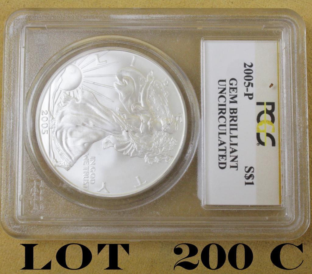 2005 1oz silver US dollar, VGCS graded, gem brilliant uncirculated. Est: $50 - $100