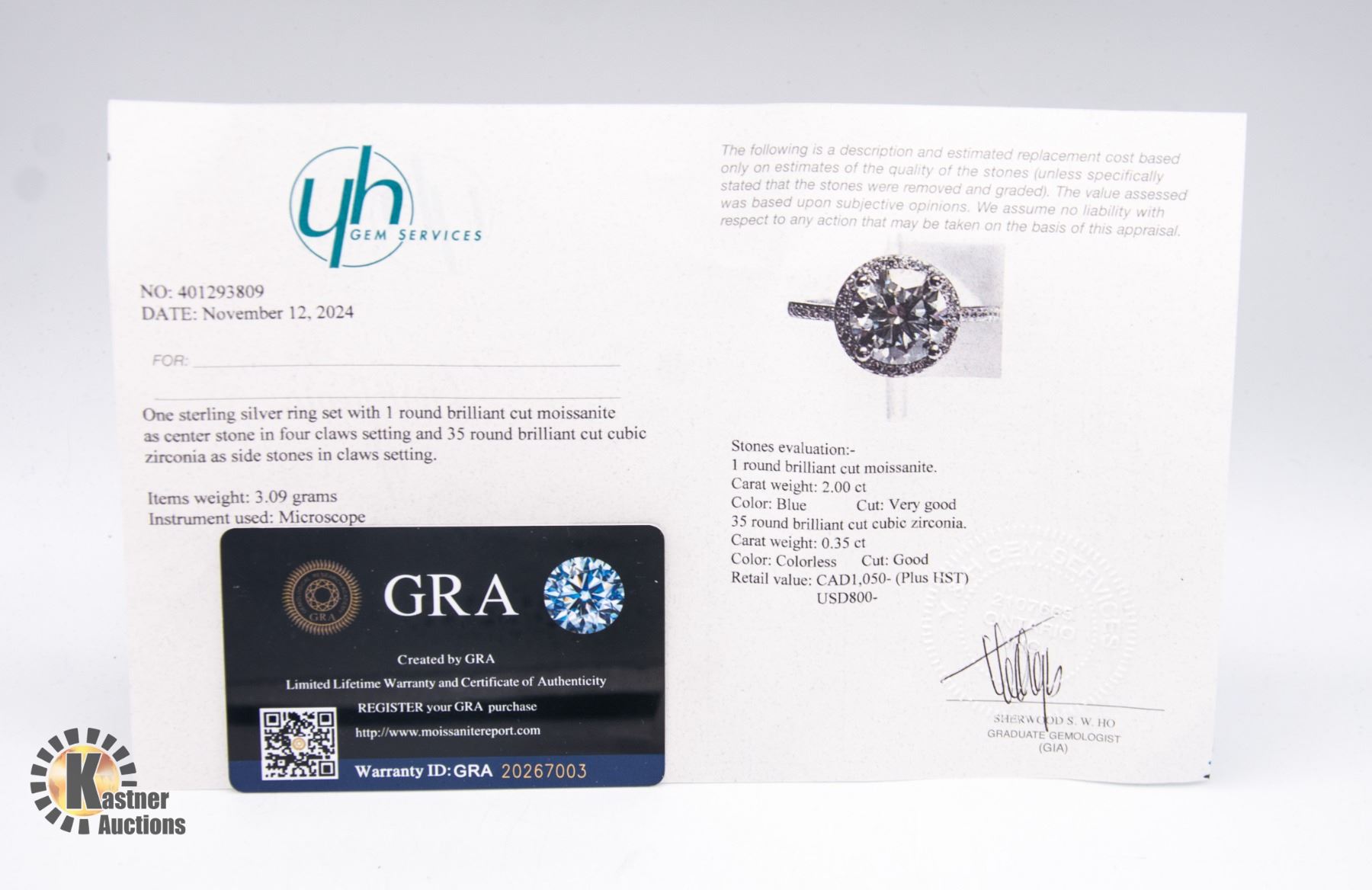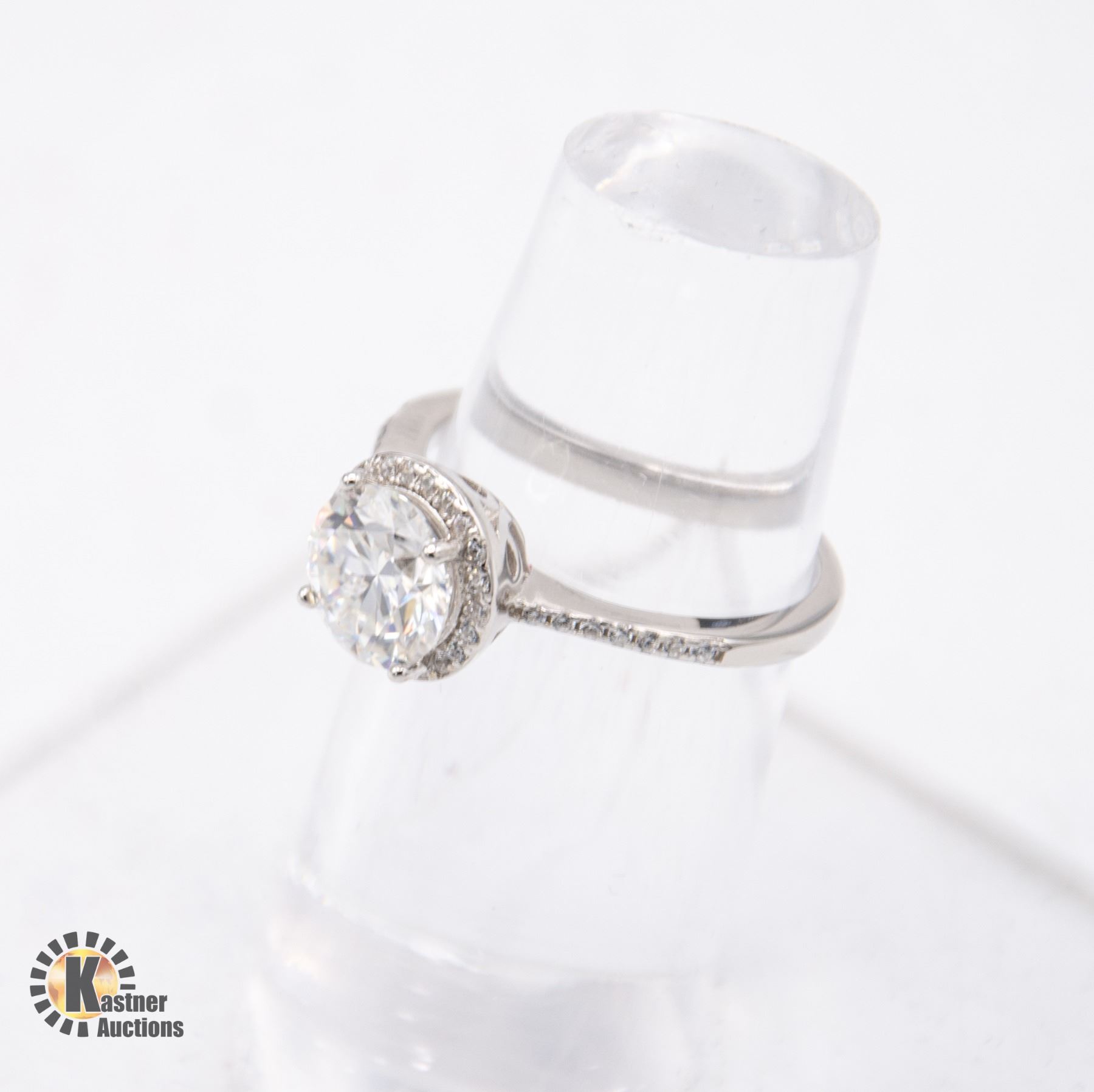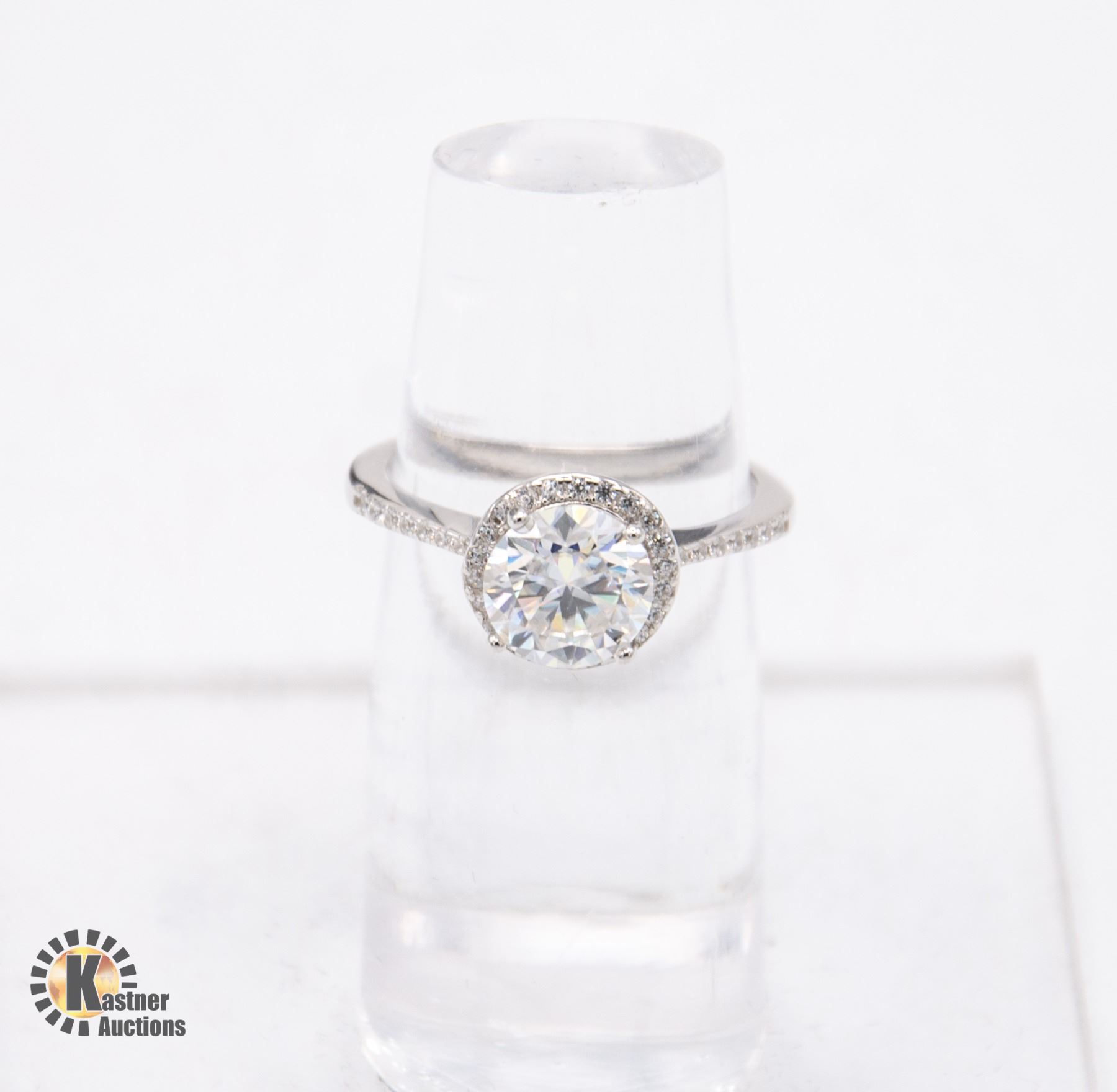 CUT MOISSANITE STONE VVS D COLOR SURROUNDED BY ROUND HALO SET IN 925 SILVER RING SIZE 7.5 RETAIL VALUE $1,050.00 COMES WITH GIFT BOX