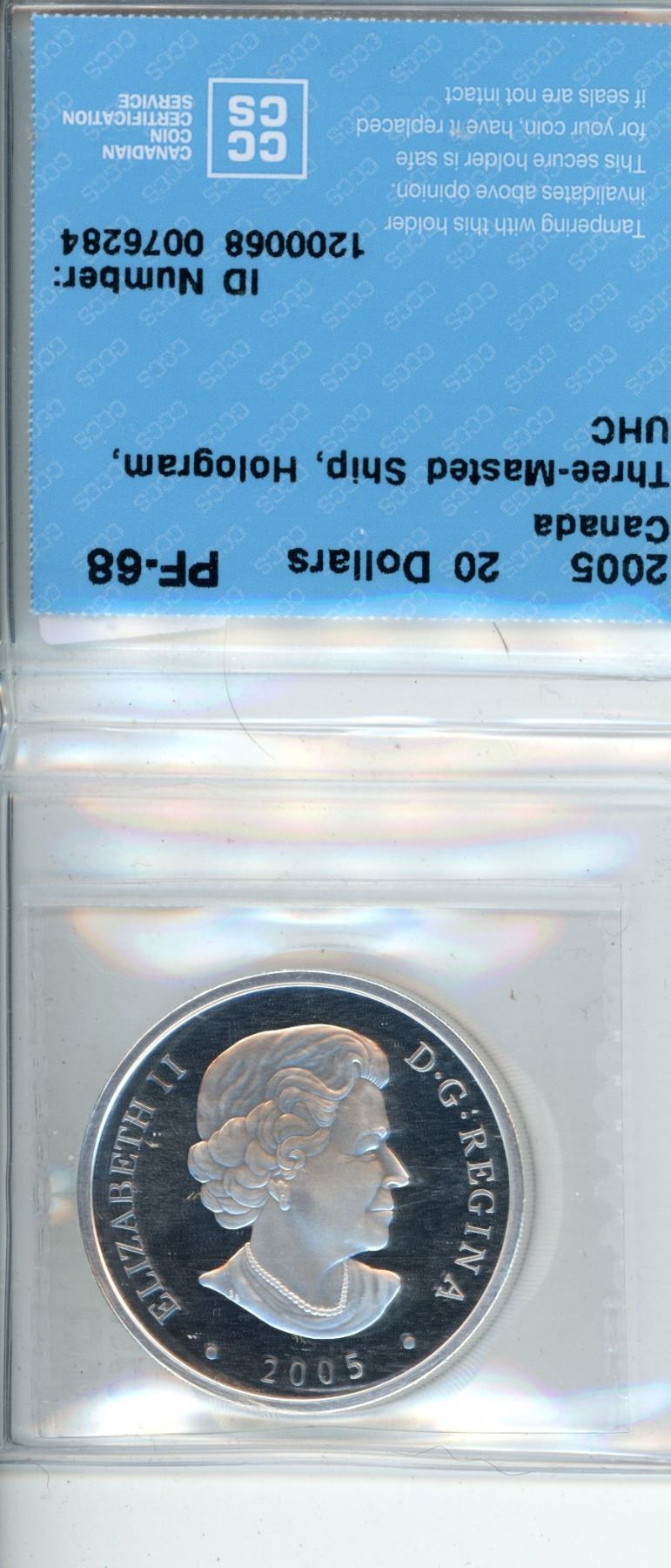 2005 $20 Canadian Dollar PF-68 Three Masted Ship CCCS Graded