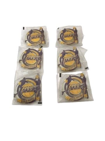 Lot of six 2005-2006 Los Angeles Lakers pins featuring silhouettes of Shaquille O’Neill and Kobe Bryant.