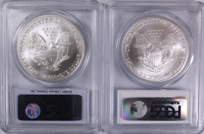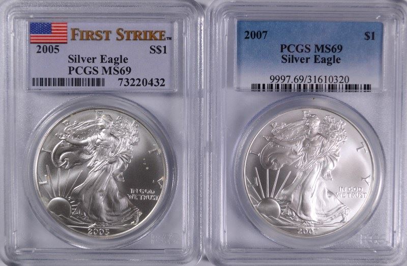 2005 & 2007 AMERICAN SILVER EAGLE PCGS MS69