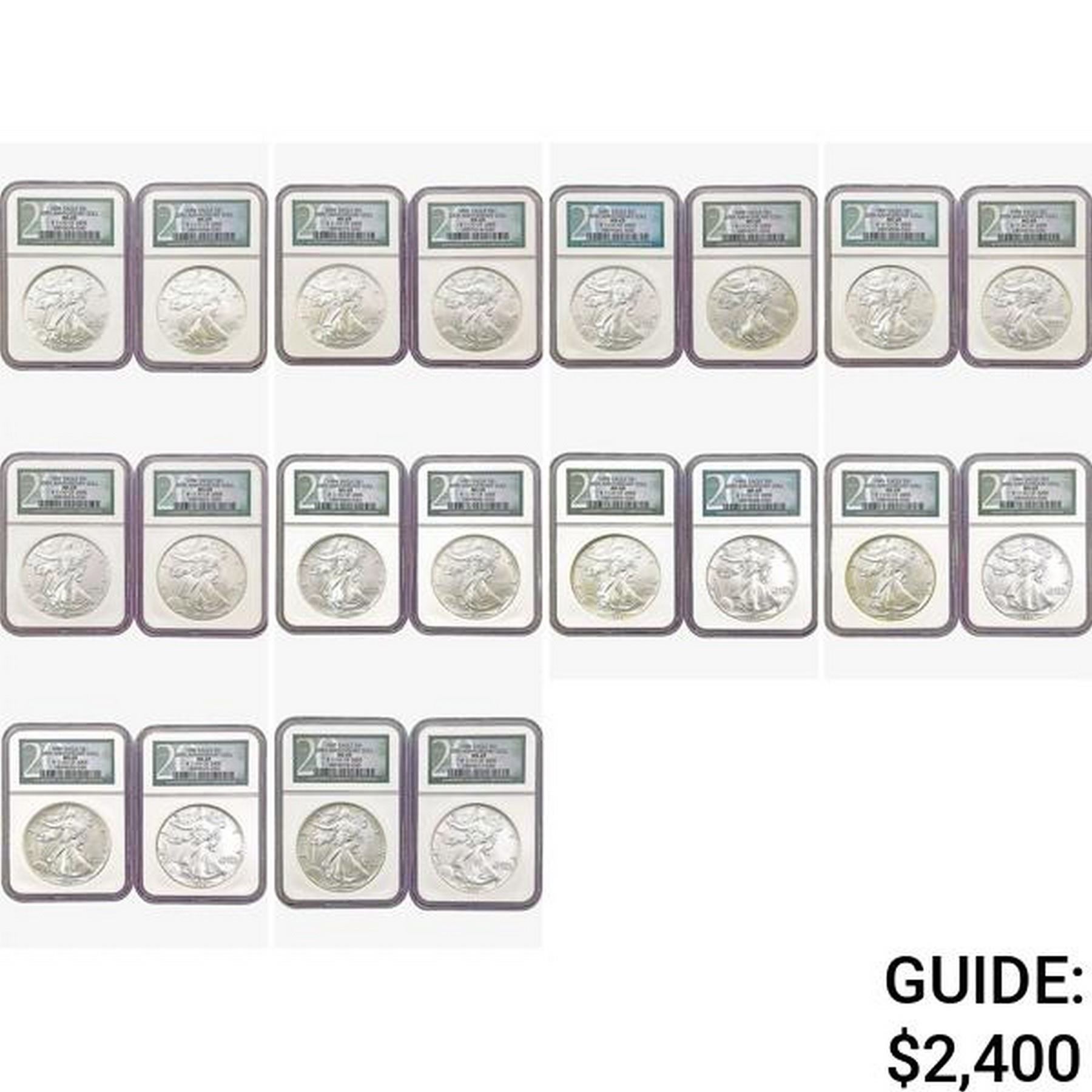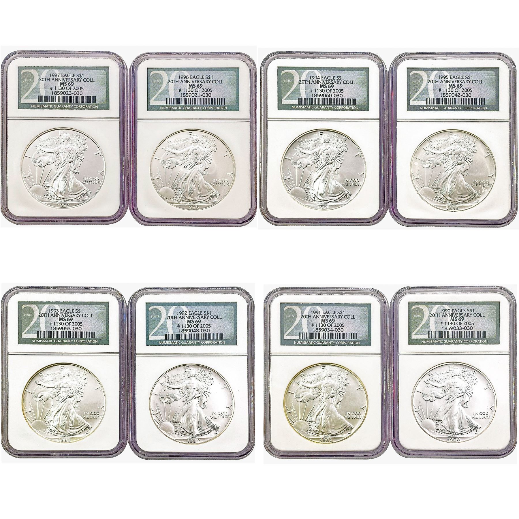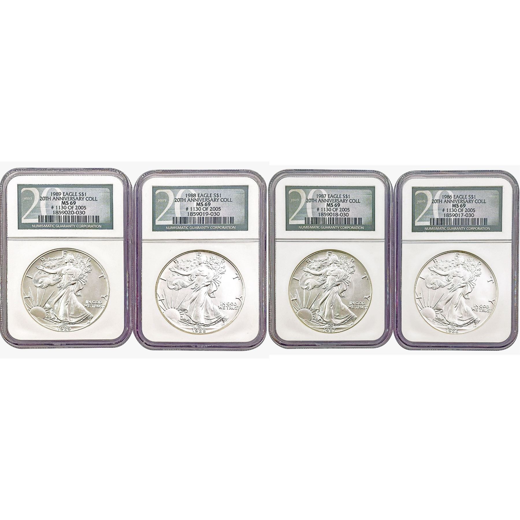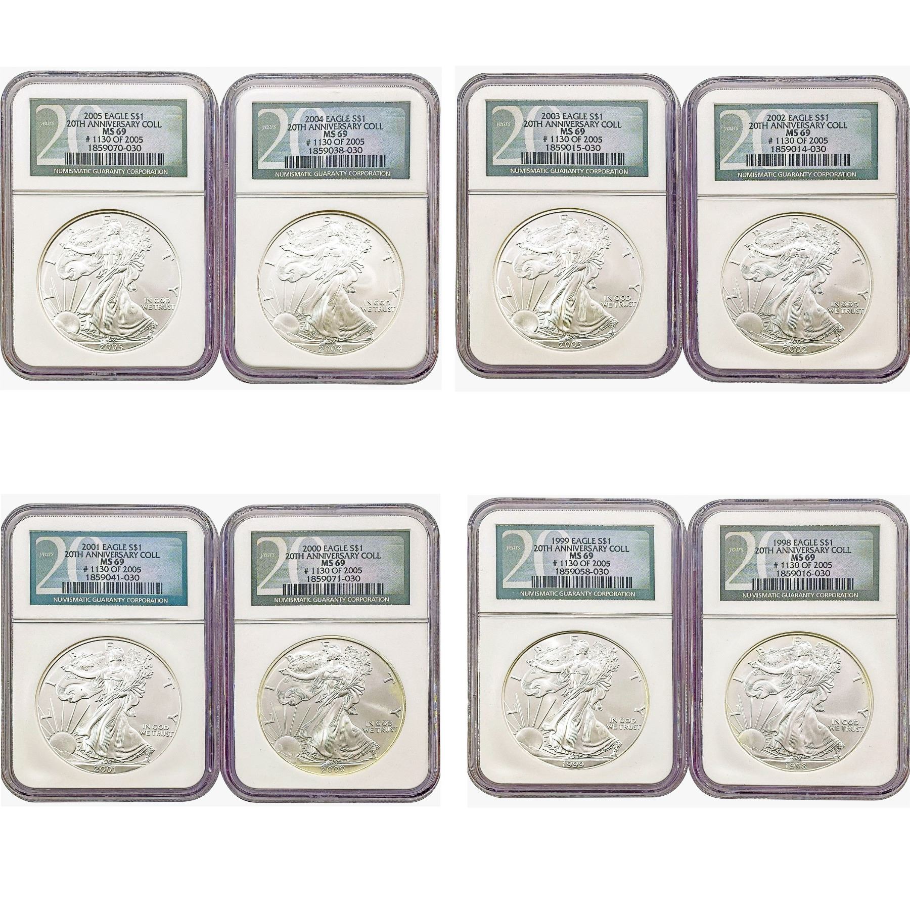 2005 20th Anniv. Silver Eagle Collection [20 Coins] NGC MS69
