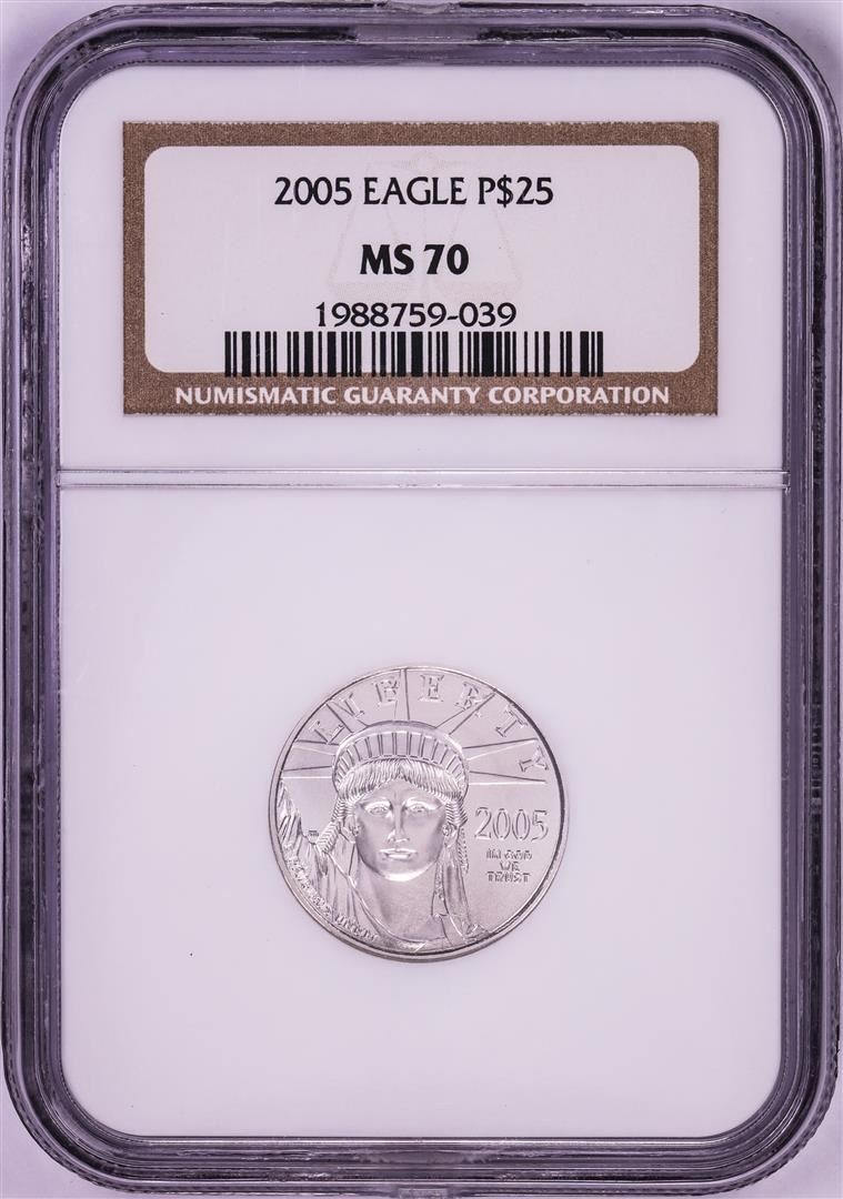 One 2005 $25 American Platinum Eagle Coin NGC MS70. NGC Certified.