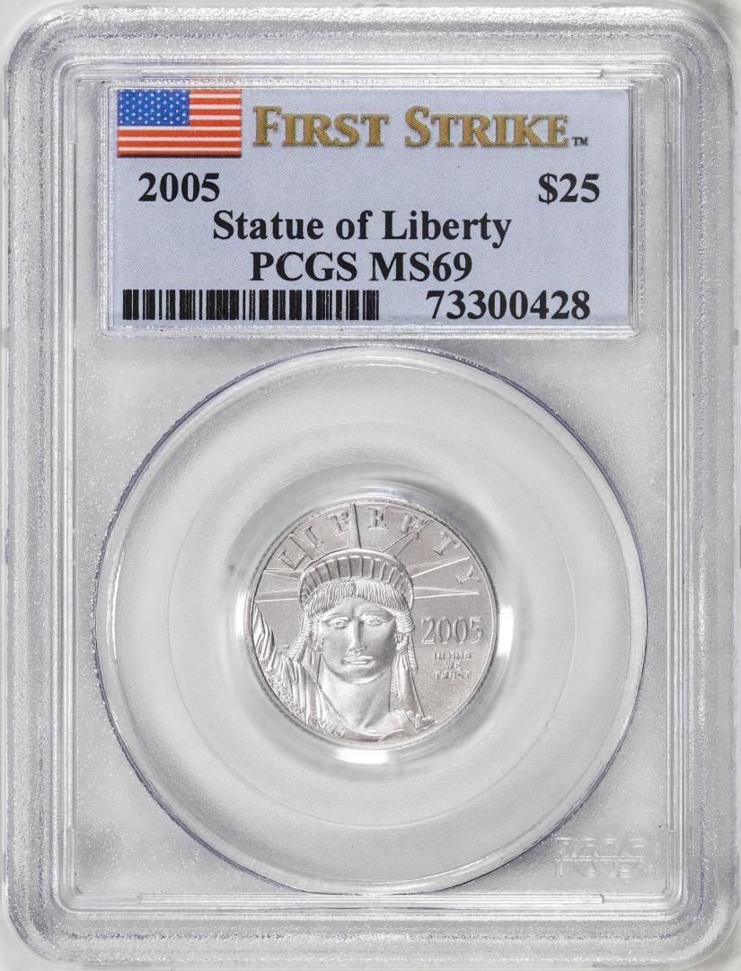 One 2005 $25 American Platinum Eagle Coin PCGS MS69 First Strike. PCGS Graded.