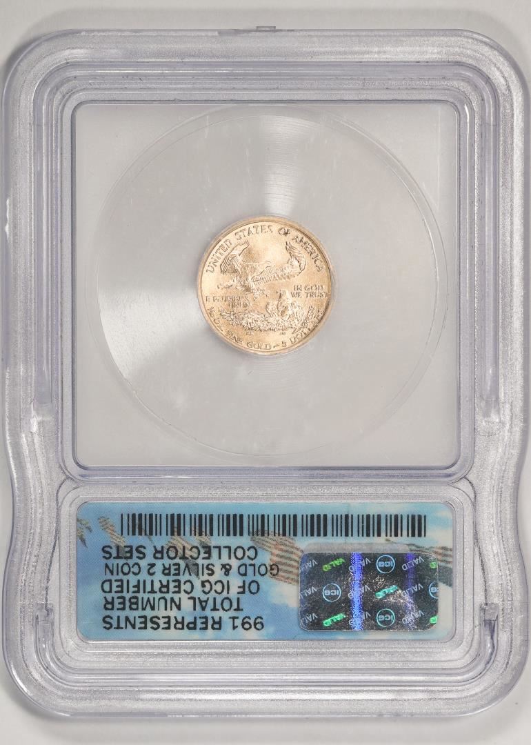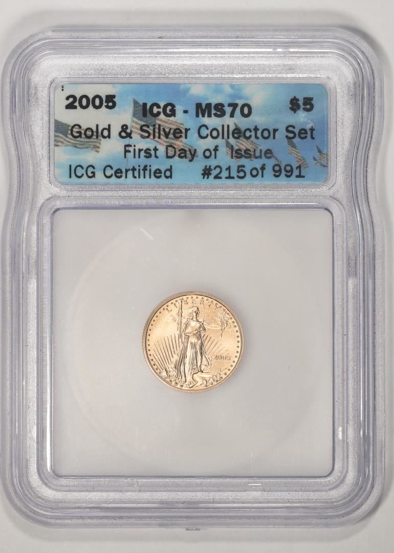 One 2005 $5 American Gold Eagle Coin ICG MS70 First Day of Issue. ICG Certified.