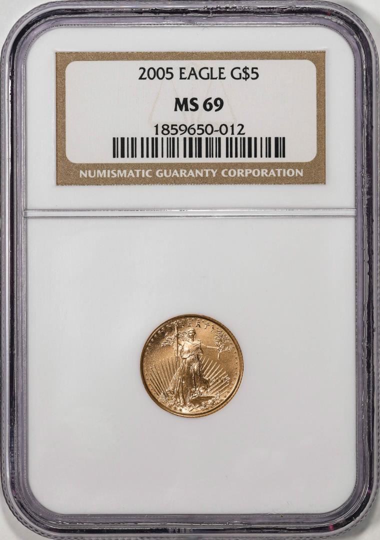 One 2005 $5 American Gold Eagle Coin NGC MS69. NGC Certified.