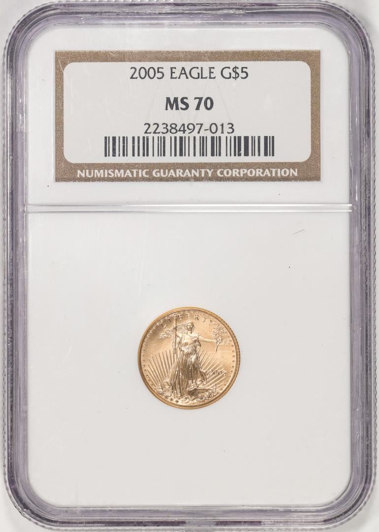 One 2005 $5 American Gold Eagle Coin NGC MS70. NGC Certified.