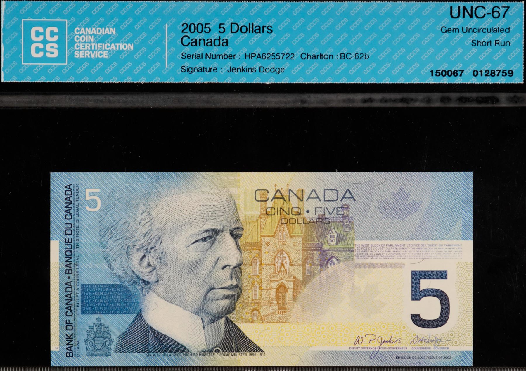 2005 $5 BC-62b #HPA6255722 CCCS Superb Gem Uncirculated-67 "Short Run"