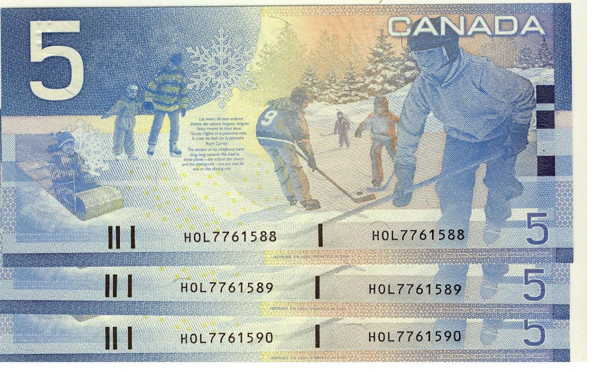 2005 $5 BC-62bA #HOL7761588,89,90, Lot of 3 consecutive notes, All UNC,