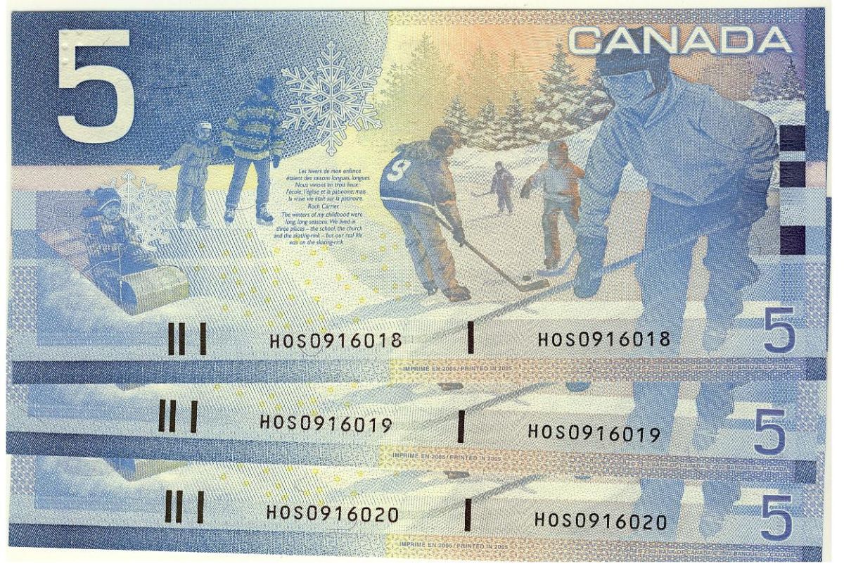2005 $5 BC-62bA #HOS0916018,019,020, Lot of 3 consecutive notes, All UNC,