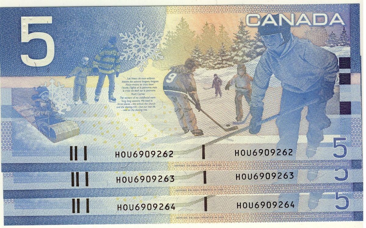 2005 $5 BC-62bA #HOU6909262-263-264, Lot of 3 consecutive notes, All UNC