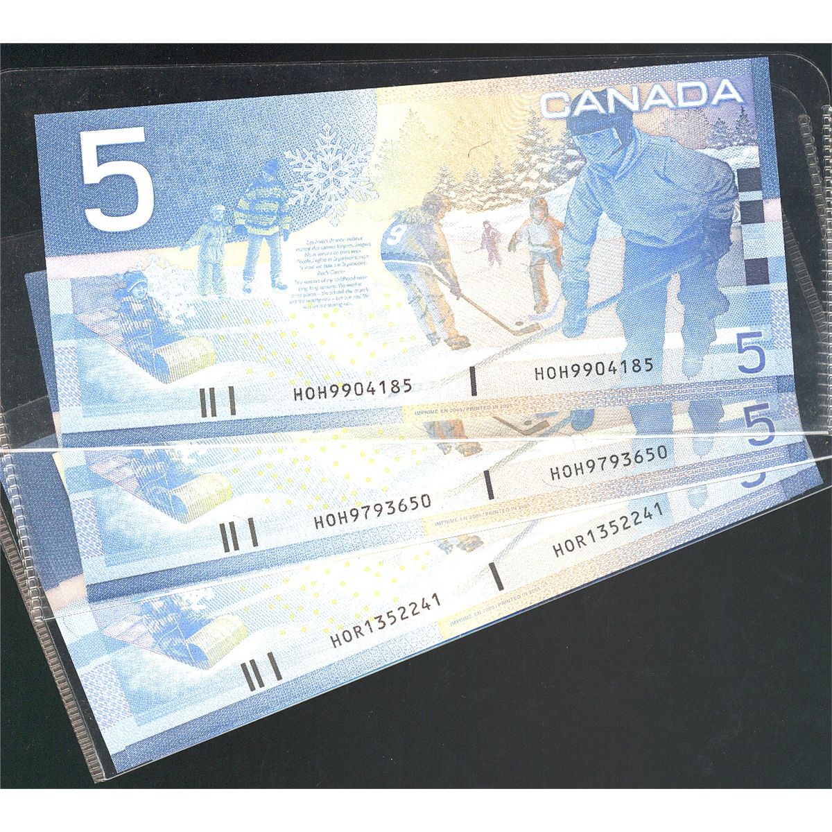 2005 $5 BC-62bA Sheet Replacement notes. Includes #HOR1352241/1241/1242, HOH9793650-654 & HOH9904185. Lot of 9 Crisp UNC notes.