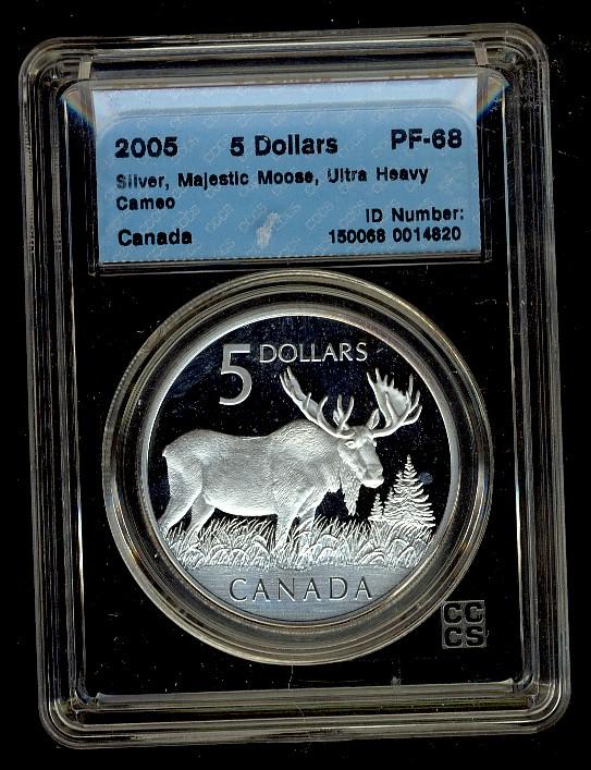 2005 $5 CCCS PF-68 Silver, Majestic Moose, Ultra Heavy Cameo.