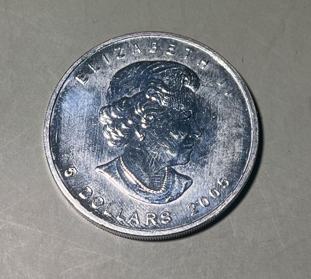 2005 $5 Canadian Maple, 1oz, 0.999 Fine Silver Round.