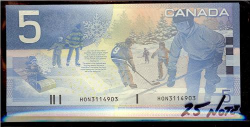 2005 $5 Insert notes. BC-62bA prefix HON. Lot of 25 notes all gem UNC with lots of consecutive runs.