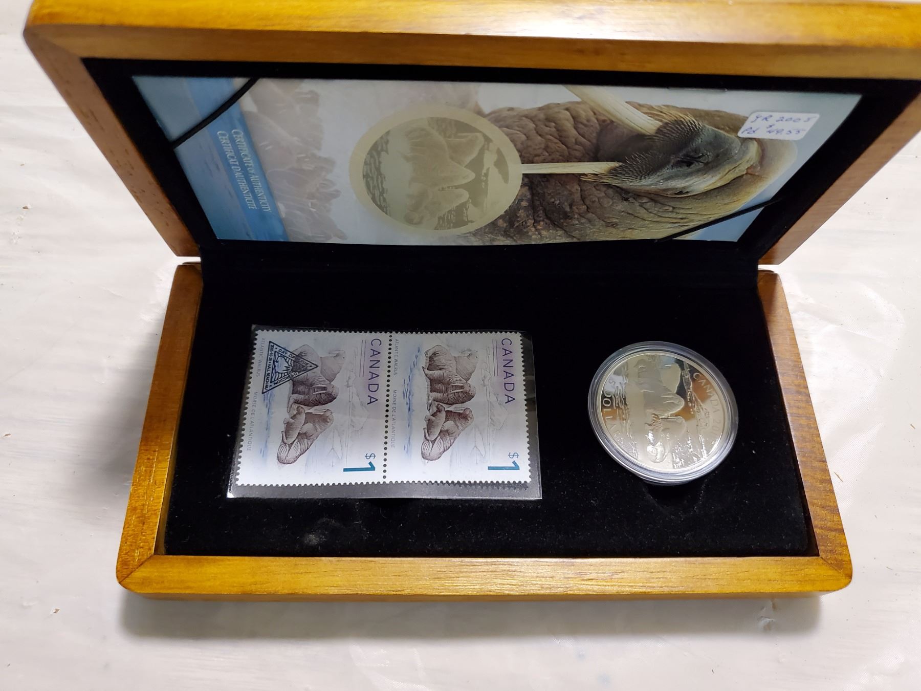 2005 $5 WALRUS & CALF COIN & STAMP SET
