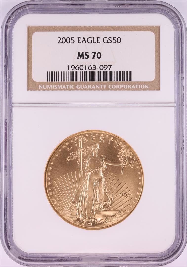 One 2005 $50 American Gold Eagle Coin NGC MS70. NGC Certified.