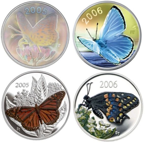 2005 50¢ Butterfly Collection includes The Fritiliary, Monarch, 2006 Silvery Blue & Short Tailed Swallowtail. Lot of 4 pcs.