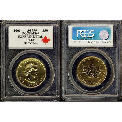 2005 $50 Gold .99999 Experimental ISSUE PCGS MS69. Extremely rare coin with only 400 minted.