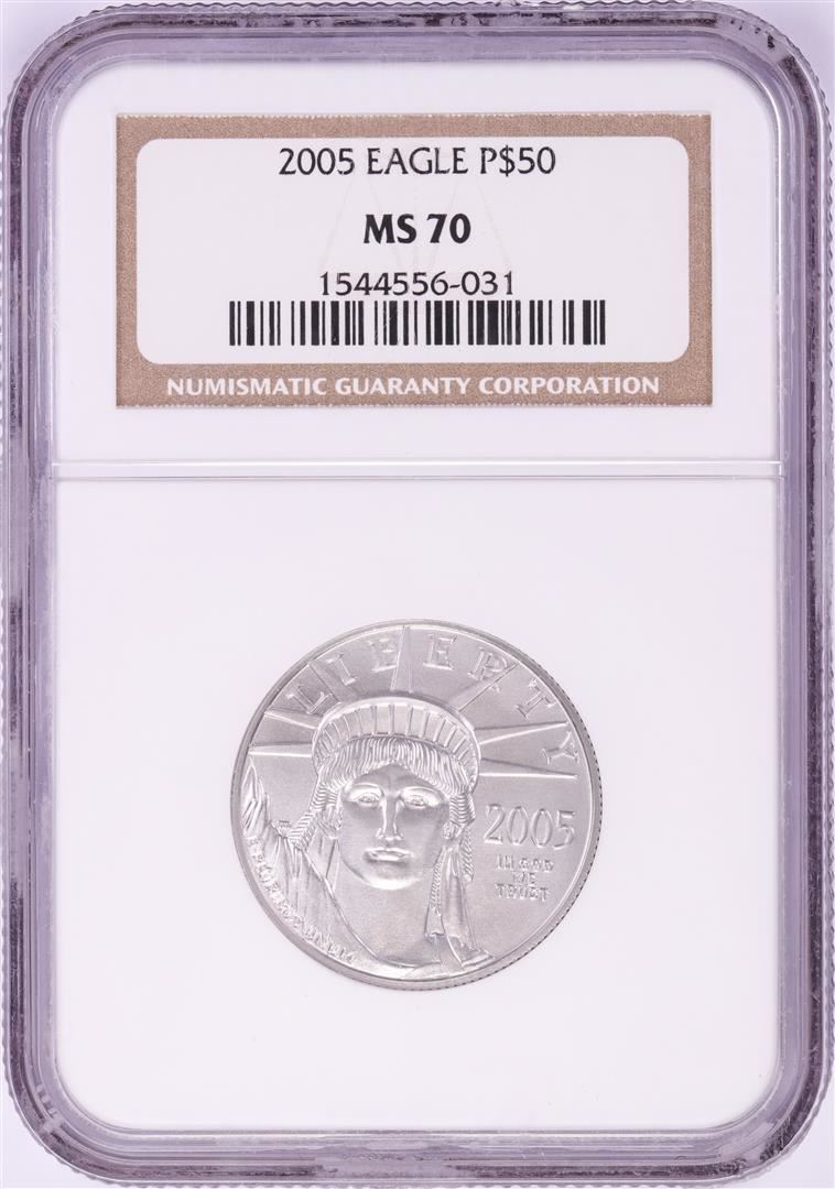 One 2005 $50 Platinum American Eagle Coin NGC MS70. NGC Certified.