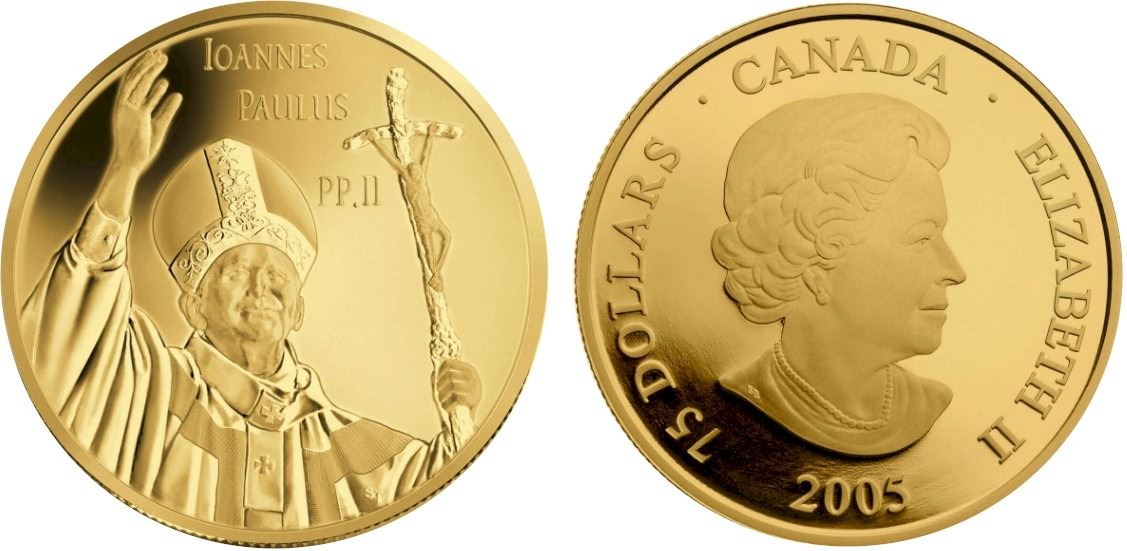 2005 $75 Gold Coin Commemorating The Visit of Pope John Paul ll To Canada.
