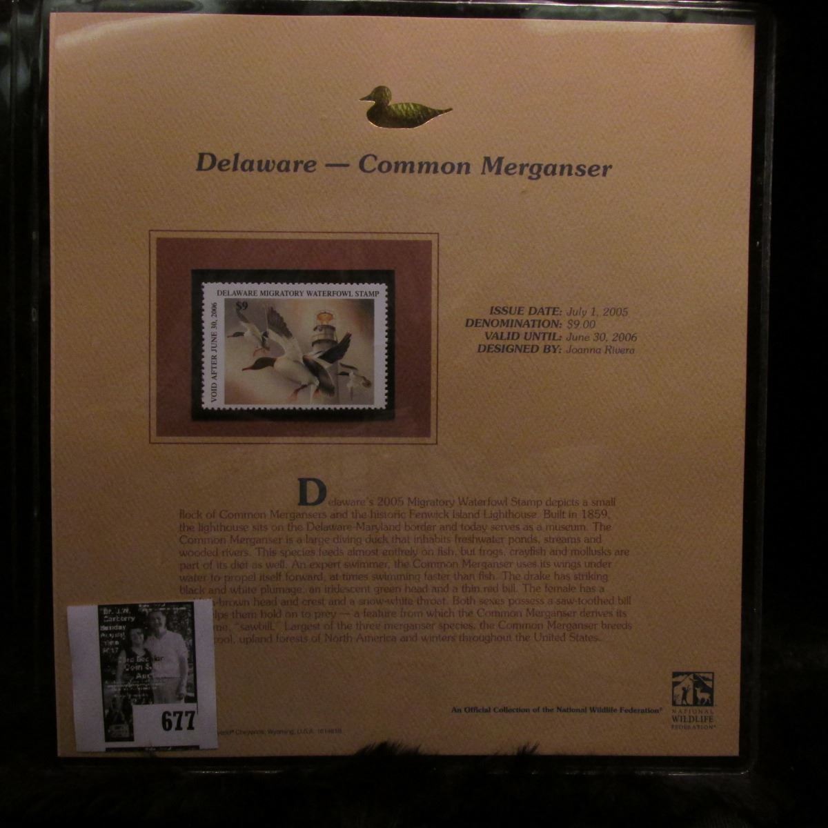 2005 $9.00 Delaware Waterfowl Stamp depicting the Common Merganser, Absolute mint condition with literature and displayed in a plastic page.