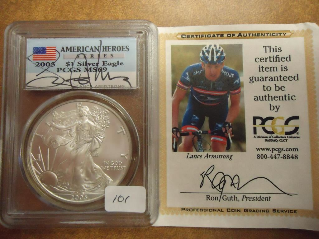 AMERICAN HEROS SERIES PCGS PERSONALLY SIGNED BY LANCE ARMSTRONG WITH CERTIFICATE
