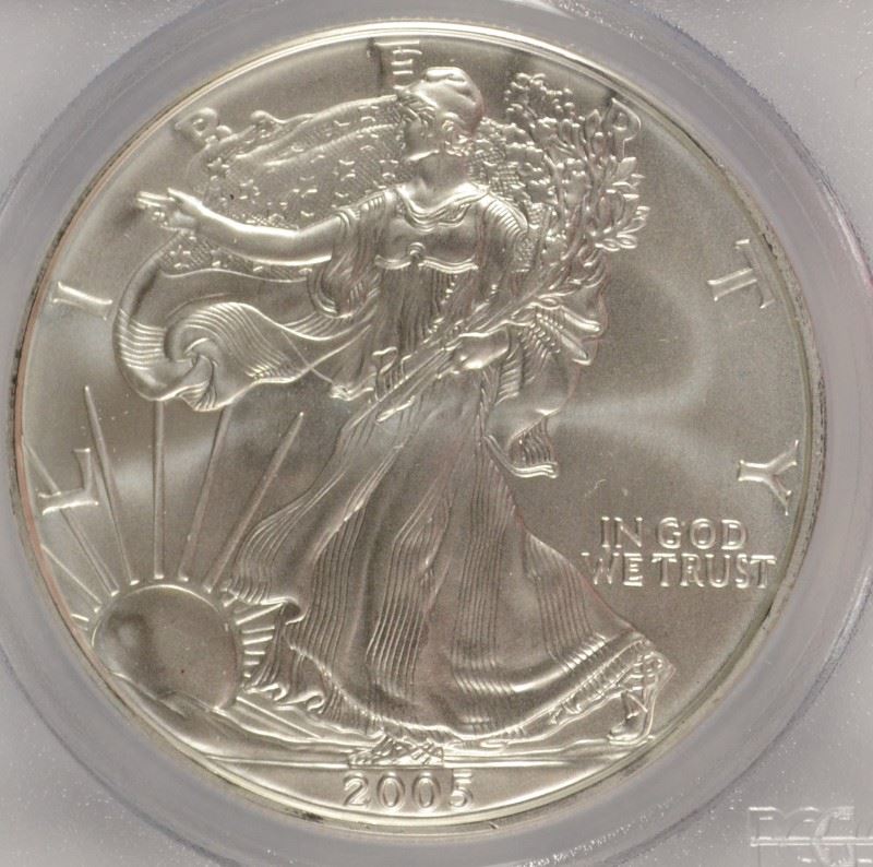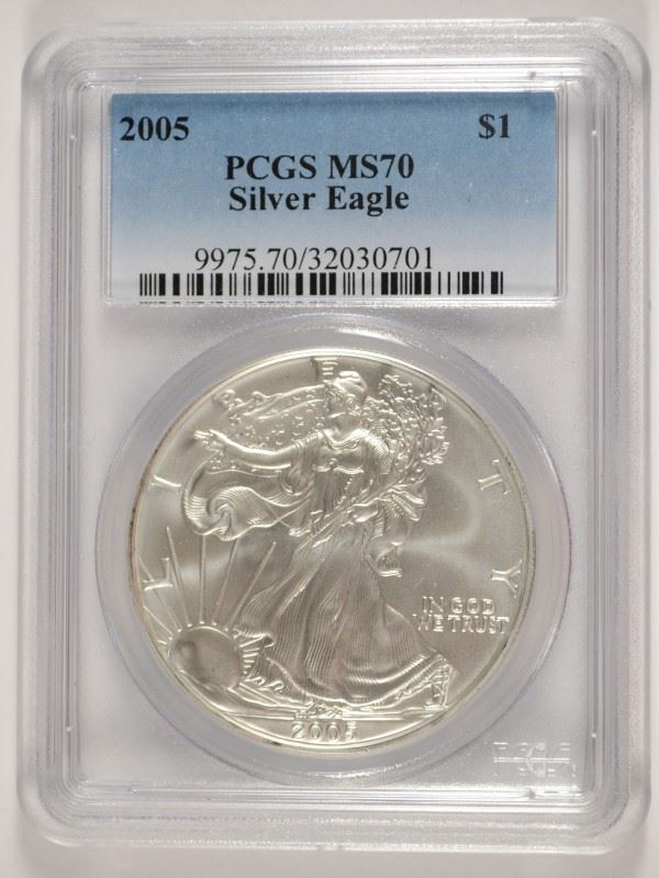 2005 AMERICAN SILVER EAGLE, PCGS MS-70 RARE LISTS IN PCGS PRICE GUIDE AT $700.00