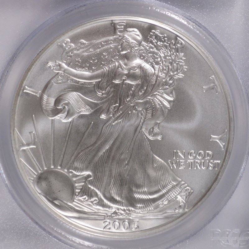 2005 AMERICAN SILVER EAGLE, PCGS MS-70 RARE LISTS IN PCGS PRICE GUIDE AT $700.00