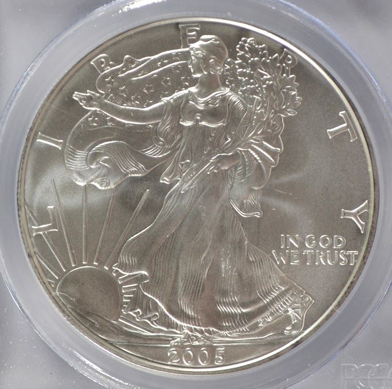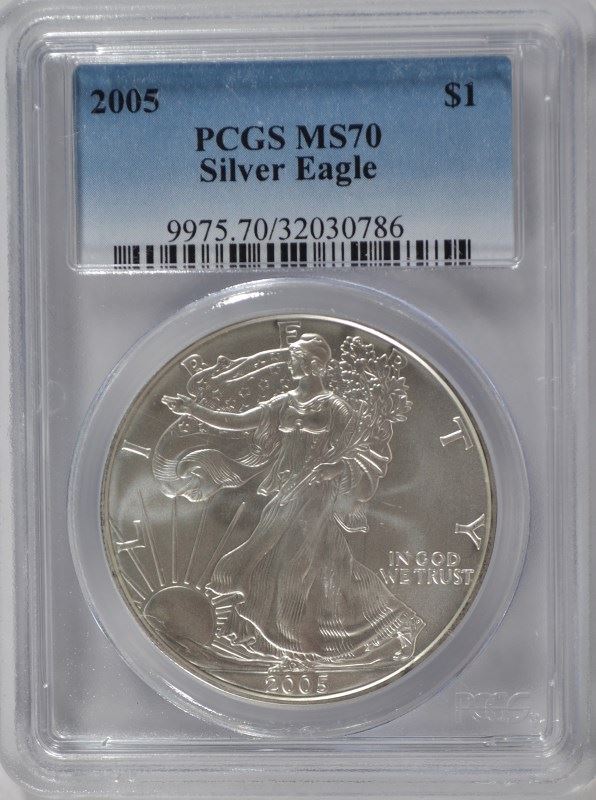 2005 AMERICAN SILVER EAGLE, PCGS MS-70 RARE LISTS IN PCGS PRICE GUIDE AT $700.00