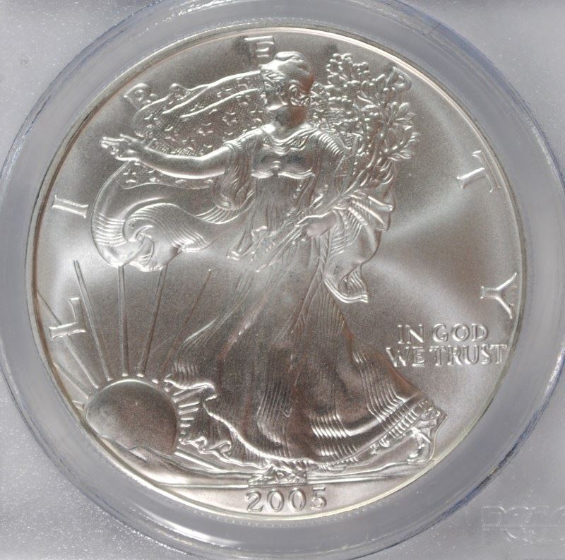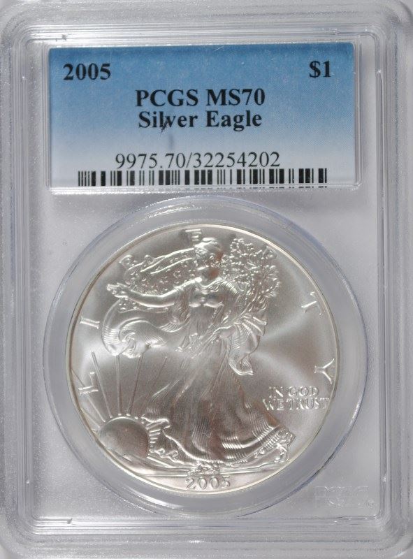 2005 AMERICAN SILVER EAGLE, PCGS MS-70 RARE LISTS IN PCGS PRICE GUIDE AT $700.00