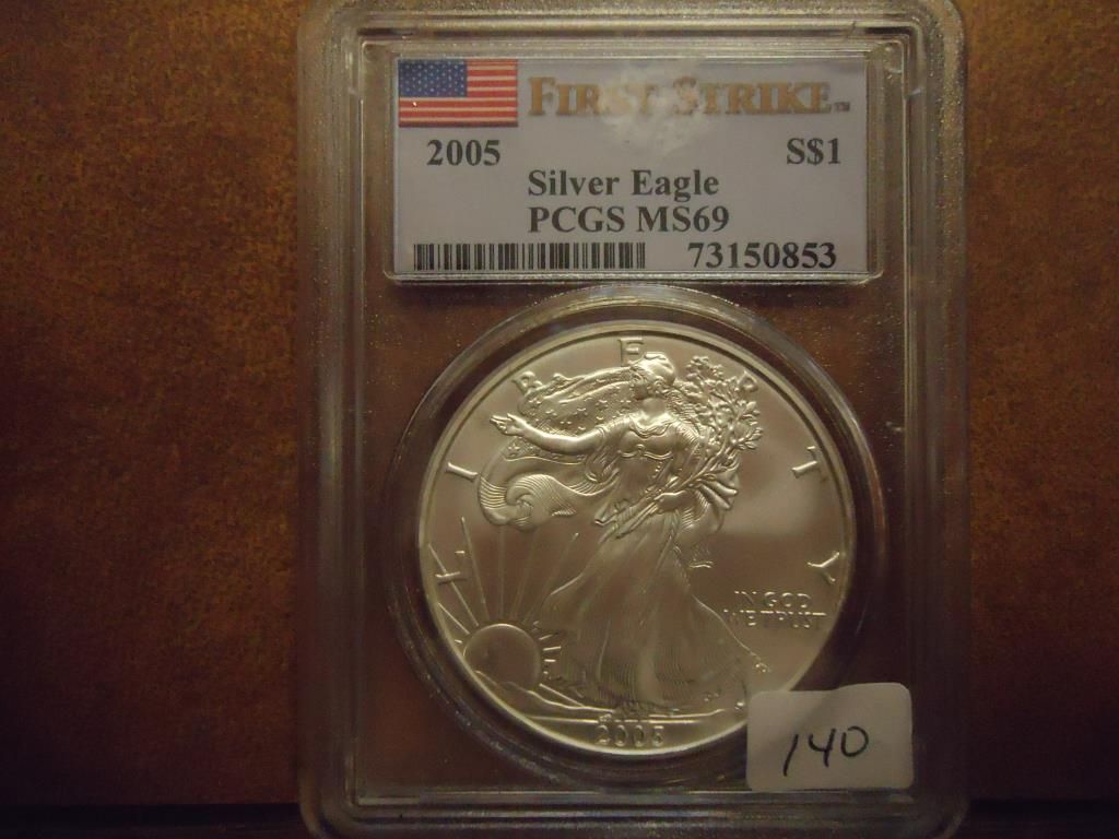 2005 AMERICAN SILVER EAGLE PCGS MS69 1ST STRIKE