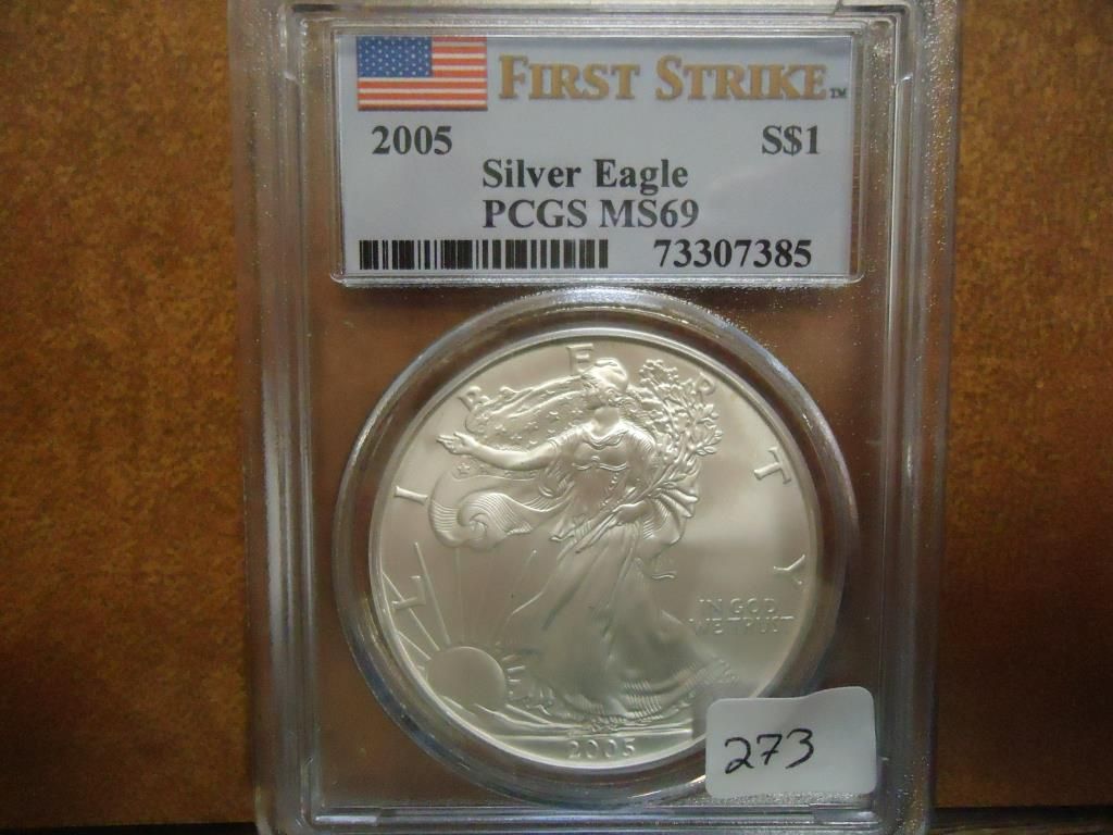 2005 AMERICAN SILVER EAGLE PCGS MS69 1ST STRIKE