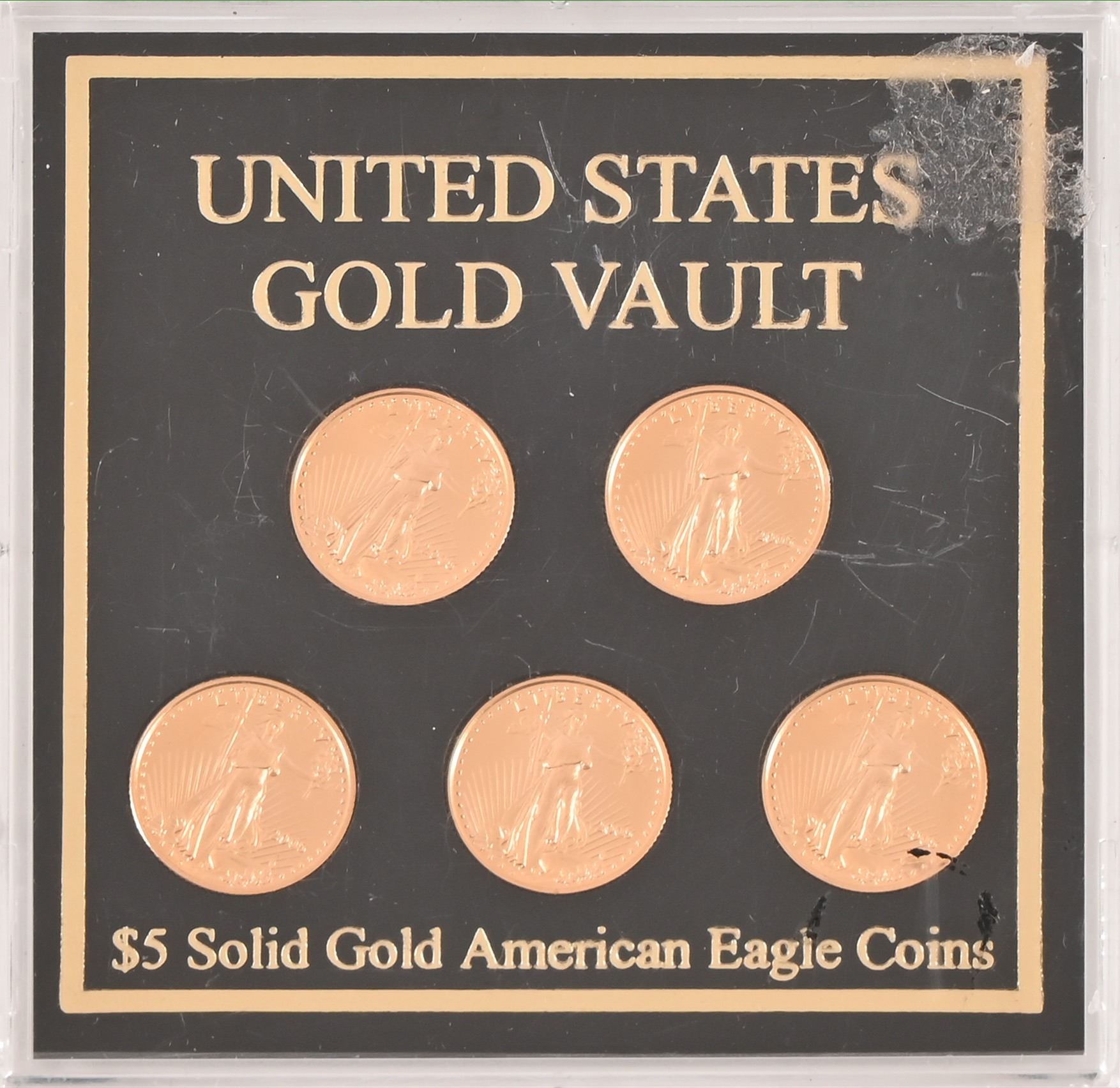 Set of five. Each Mint 1/10 oz. Fine Gold. 1/2 oz. of gold.