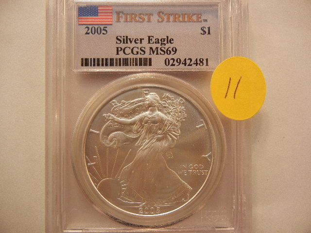 2005 American Silver Eagle, .999 Fine Silver, 1 Troy Oz., First Strike, Graded by PCGS MS69