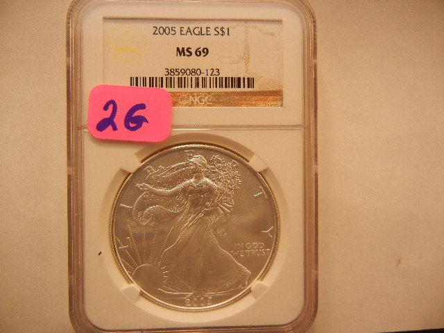 2005 American Silver Eagle, .999 Fine Silver, 1 Troy Oz., Graded by NGC, MS69