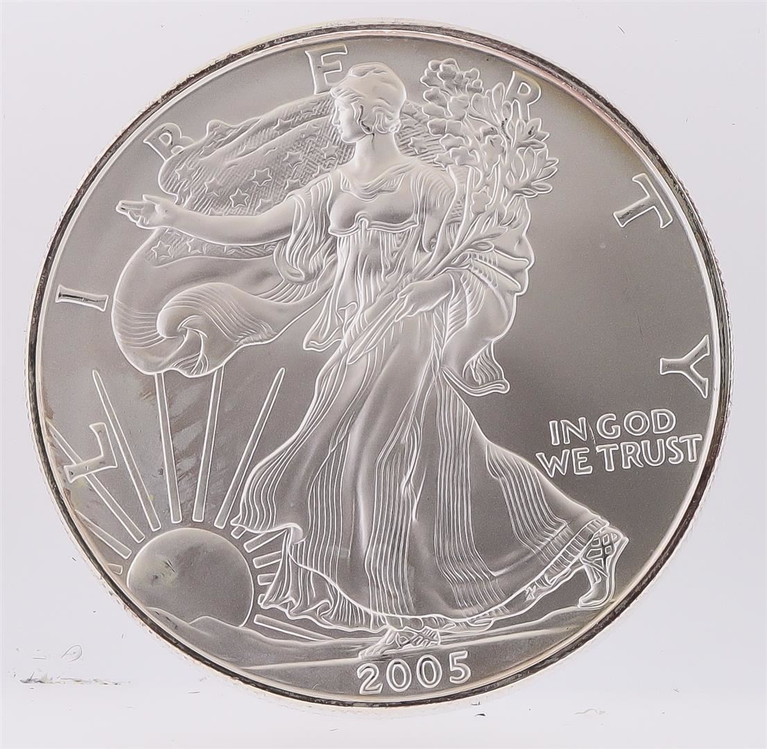 One 2005 American Silver Eagle Dollar Coin.