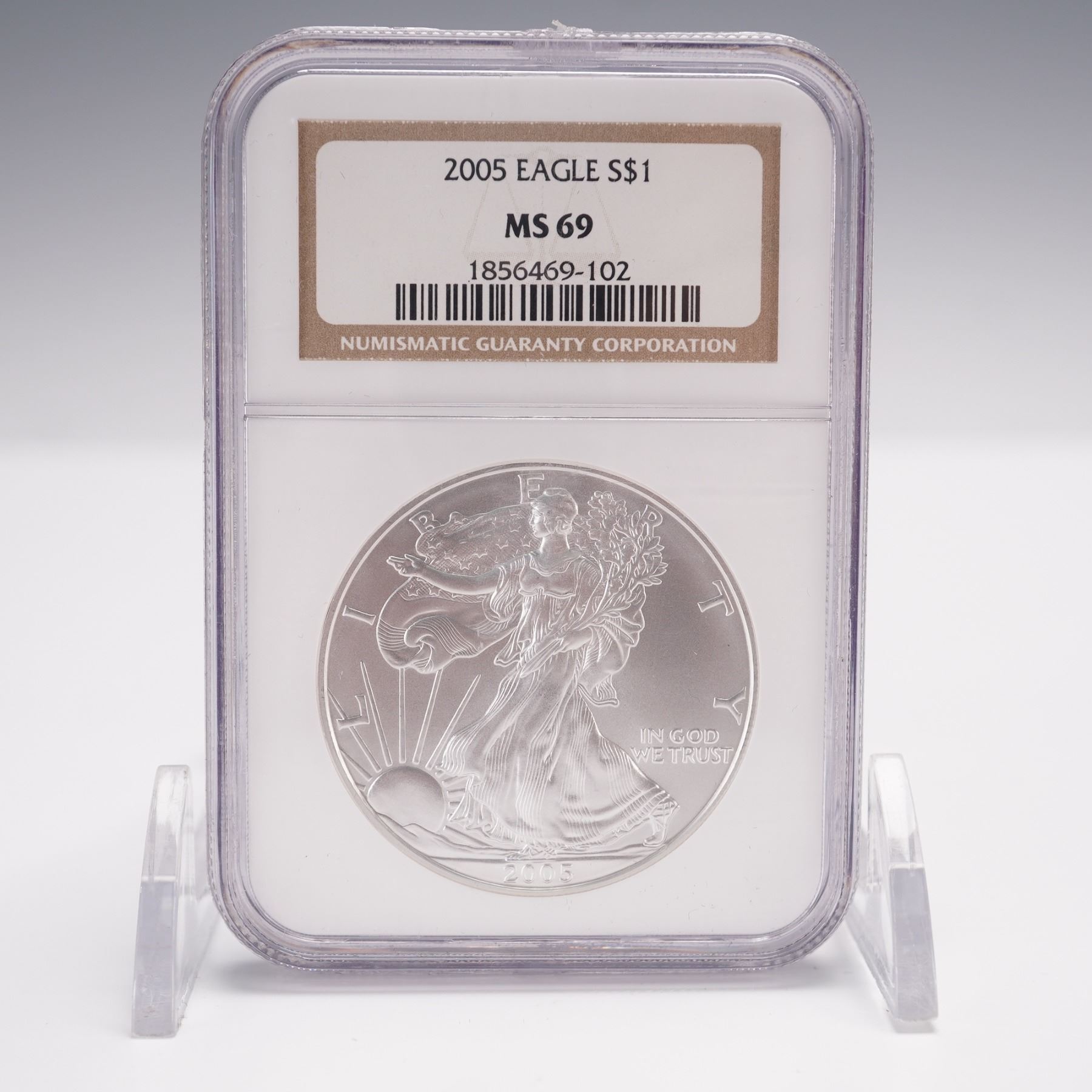 2005 American Silver Eagle Type 1 Dollar NGC Graded MS 69