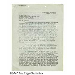 <B>Walter Brennan Signed Contract.</B></I> A two-page agreement agreement dated January 12, 1945, between Warner Bros. Studios and...