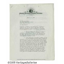 <B>Claudette Colbert Signed Contract.</B></I> A two-page employment contract on MGM letterhead, dated February 20, 1939, signed by...