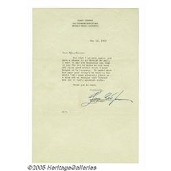 <B>Gary Cooper SIgned Letter. </B></I> The movies' archetypal "strong, silent type," Gary Cooper rose to fame in suc...