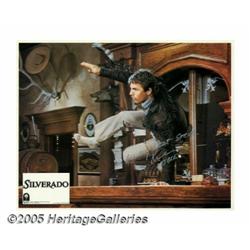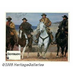 <B>Kevin Costner Signed Lobby Card.</B></I> A promo still for Lawrence Kasdan's over-the-top western "Silverado" sig...