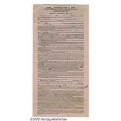<B>Broderick Crawford Signed Contract.</B></I> Screen Actors Guild contract, dated June 17, 1947, engaging actor Broderick Crawfor...