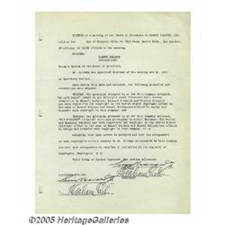 <B>Samuel Goldwyn Signed Minutes.</B></I> Minutes from a Samuel Goldwyn, Inc. board meeting, dated January 1935, and signed by Gol...