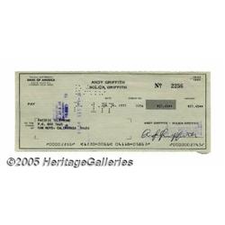 Andy Griffith Signed Check. A signed check dated