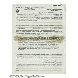 <B>Jack Haley Signed Document.</B></I> Established early on as a substantial vaudeville, Broadway and film star, comedian, and sin...