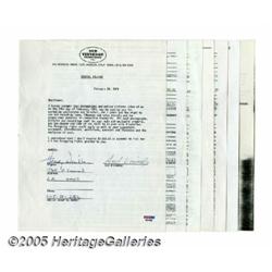 <B>Alfred Hitchcock Signed Document.</B></I> A two-page, 8.5" by 11" document, dated December 7, 1965, detailing adverti...