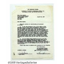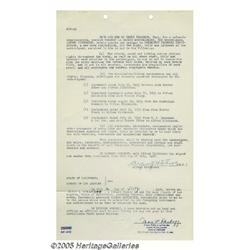 Alfred Hitchcock Signed Contract. A single-page a
