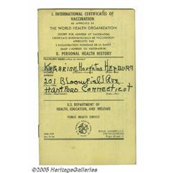 <B>Katharine Hepburn Vaccination Record.</B></I> International Certificates of Vaccination booklet, with entry dated October 18, 1...